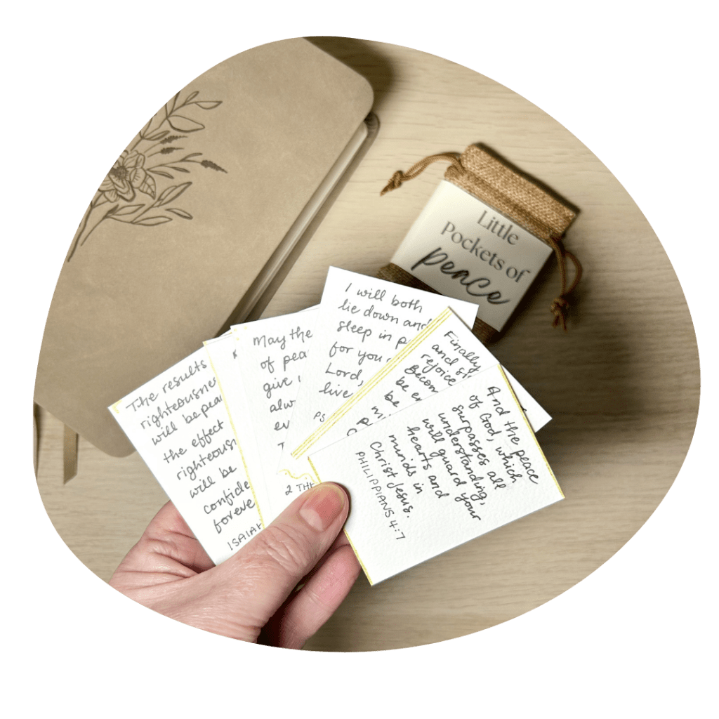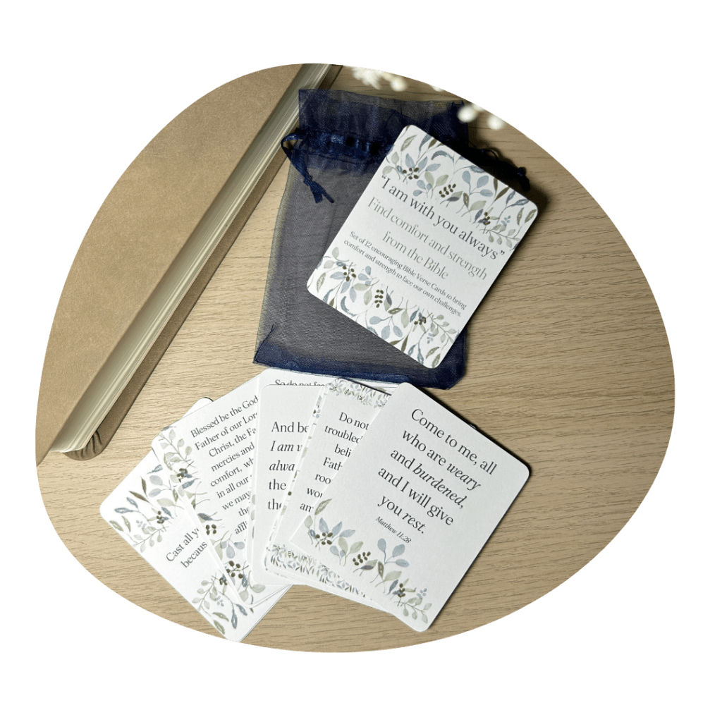 I made this set of 12 pocket-sized Scripture cards especially for people who might be grieving, or going through hard times, with encouragement straight from the Bible.
