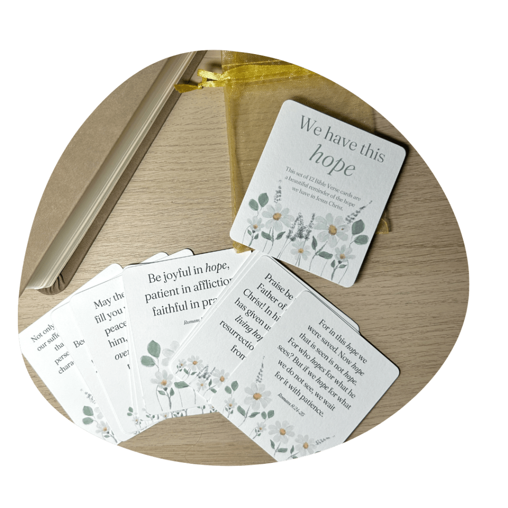 This set of 12 Bible Verse Cards are designed with a flower meadow illustration, and each contain a verse from Scripture about hope.
