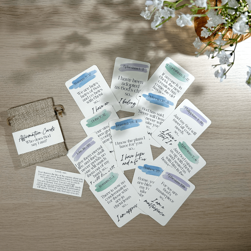 Encourage someone you know with Bible truths about your Identity. These ‘I am who you say I am’ Bible Verse Affirmation cards can help reveal the truth about who God says you are. Each set of 20 pocket-sized Bible Verse cards, comes with a statement, Bible verse, and a declaration.